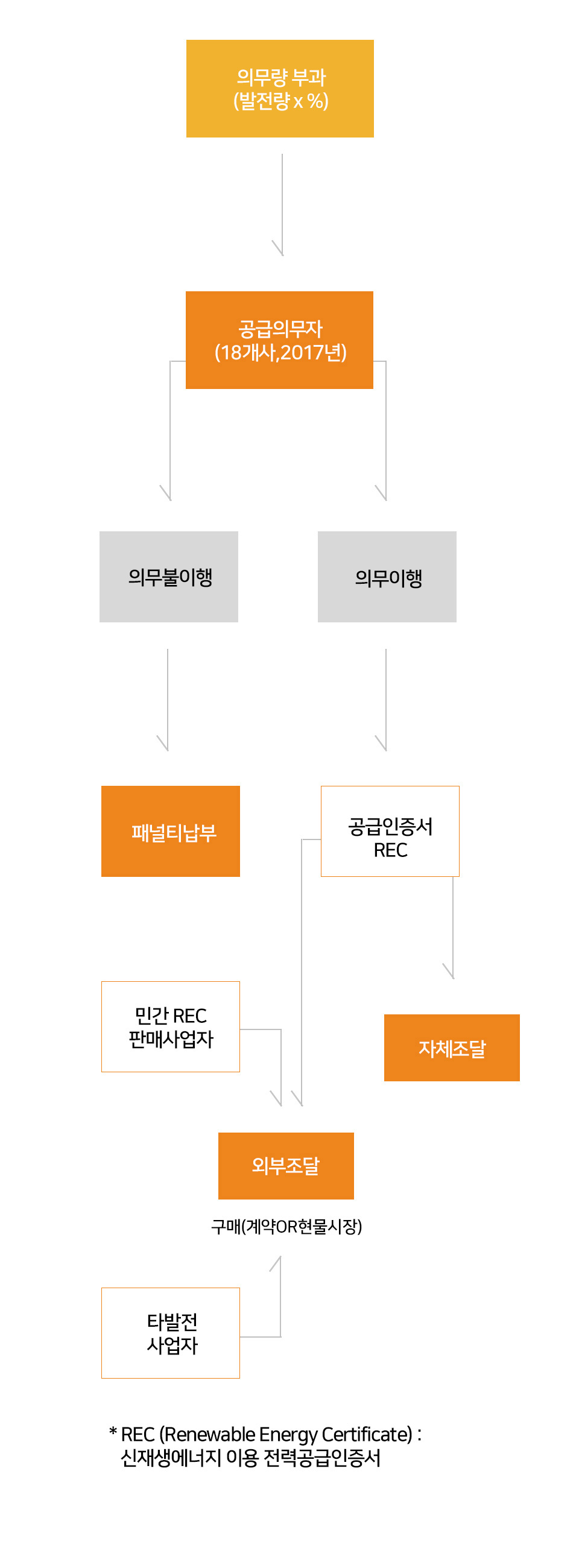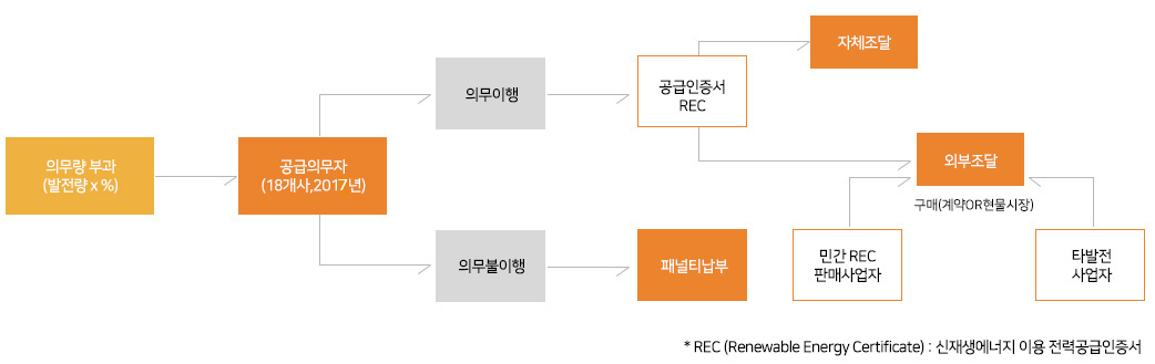 건물옥상, 공장, 창고, 축사, 재배사 지붕 혹은 토지에 태양광발전시설을 설치하여 생산한 전기를 한국전력공사와 공급의무자에게 판매하여 수익을 창출하는 정부정책사업